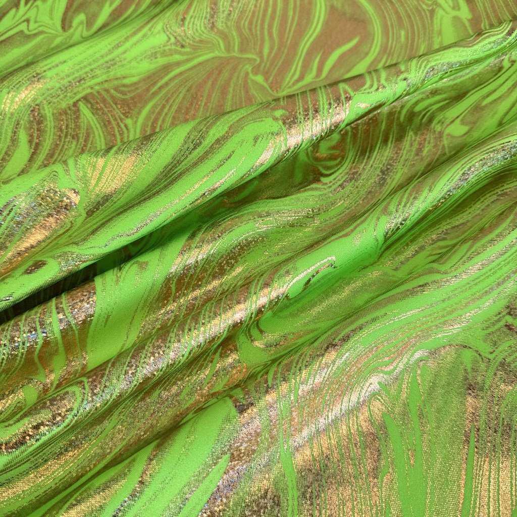 Hochwertiger elastischer Jersey mit einheitlicher Grundfarbe, auf deren Oberfläche sich silberne Glitzereffekte abwechseln und für einen auffälligen Glanz sorgen. Der Stoff stammt von einem europäischen Hersteller und besteht aus 80 % Polyamid und 20 % Elasthan, mit einem Flächengewicht von 204 g/m². Dieser Badeanzugstoff eignet sich hervorragend für Tanzkostüme, Badeanzüge, Bikinis, Leggings, Trikots, Bodys und Kleider.
