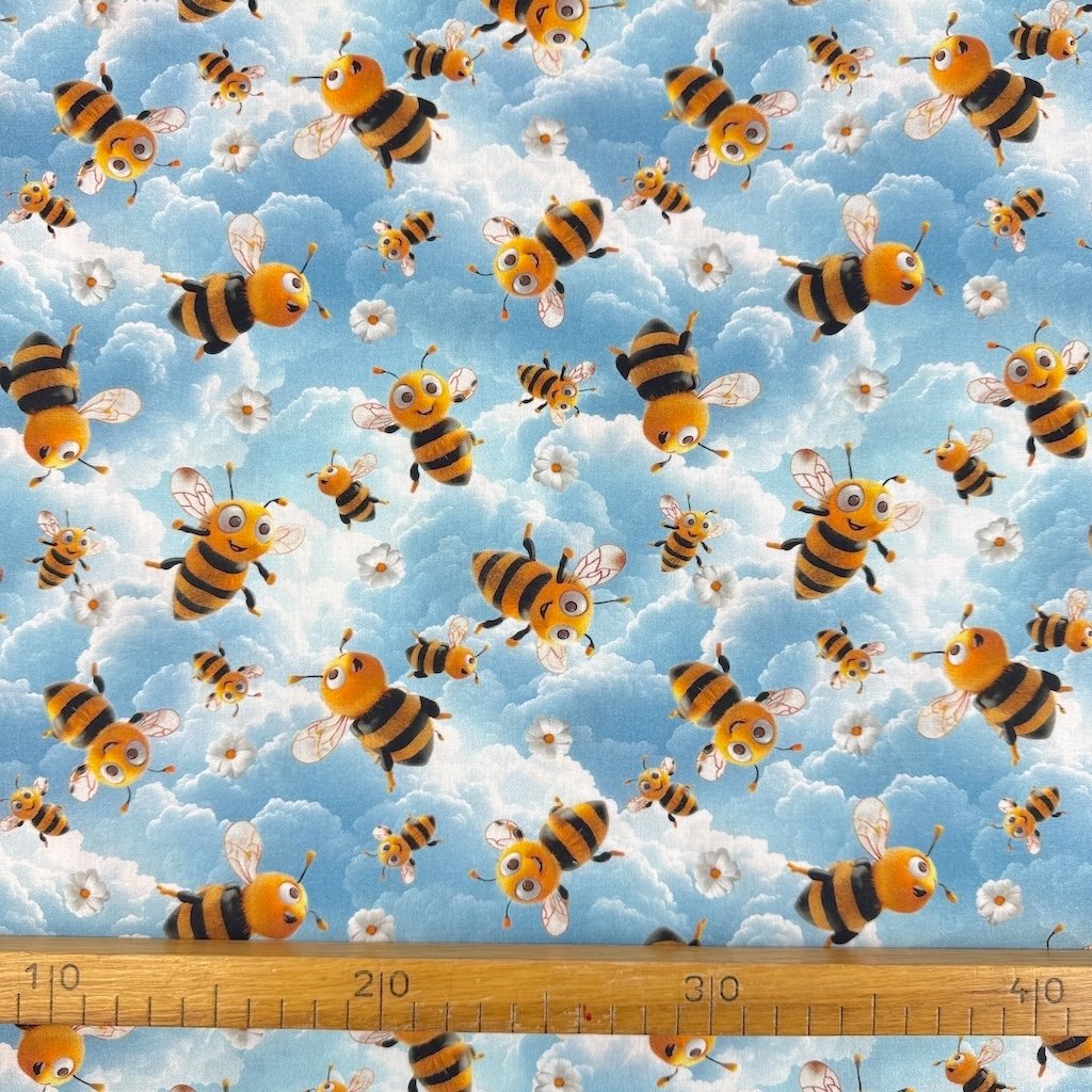 Baumwolle Digital – Bienchen auf Blau