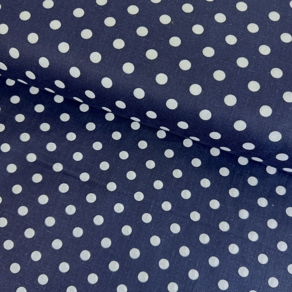 Baumwolle gemustert - Punkt (1 cm) Weiß auf Dunkelblau