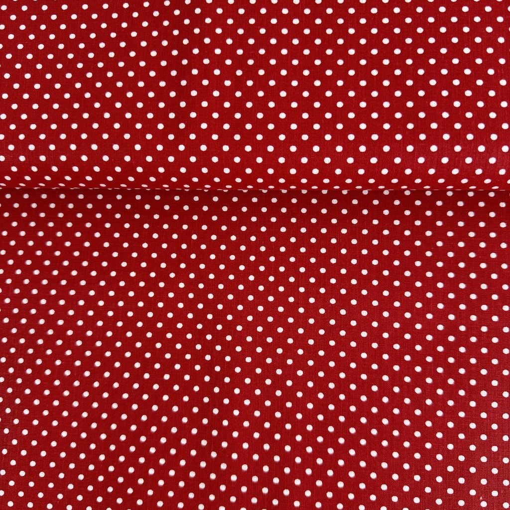 Baumwolle gemustert - Punkt (3 mm) Weiß auf Rot