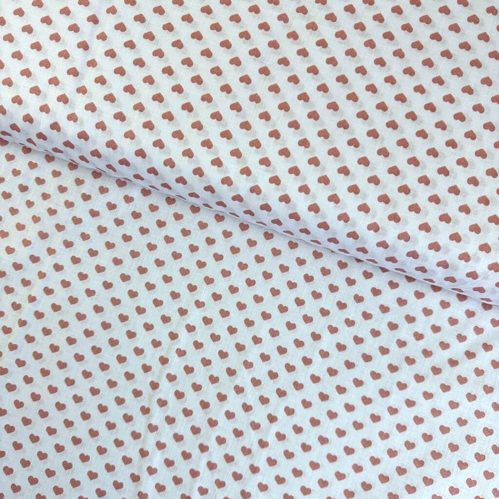 Baumwolle gemustert - Rosa Herzen auf Weiß