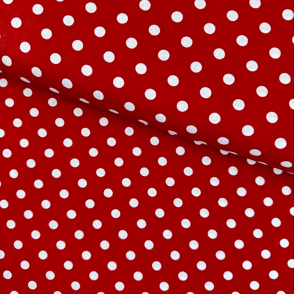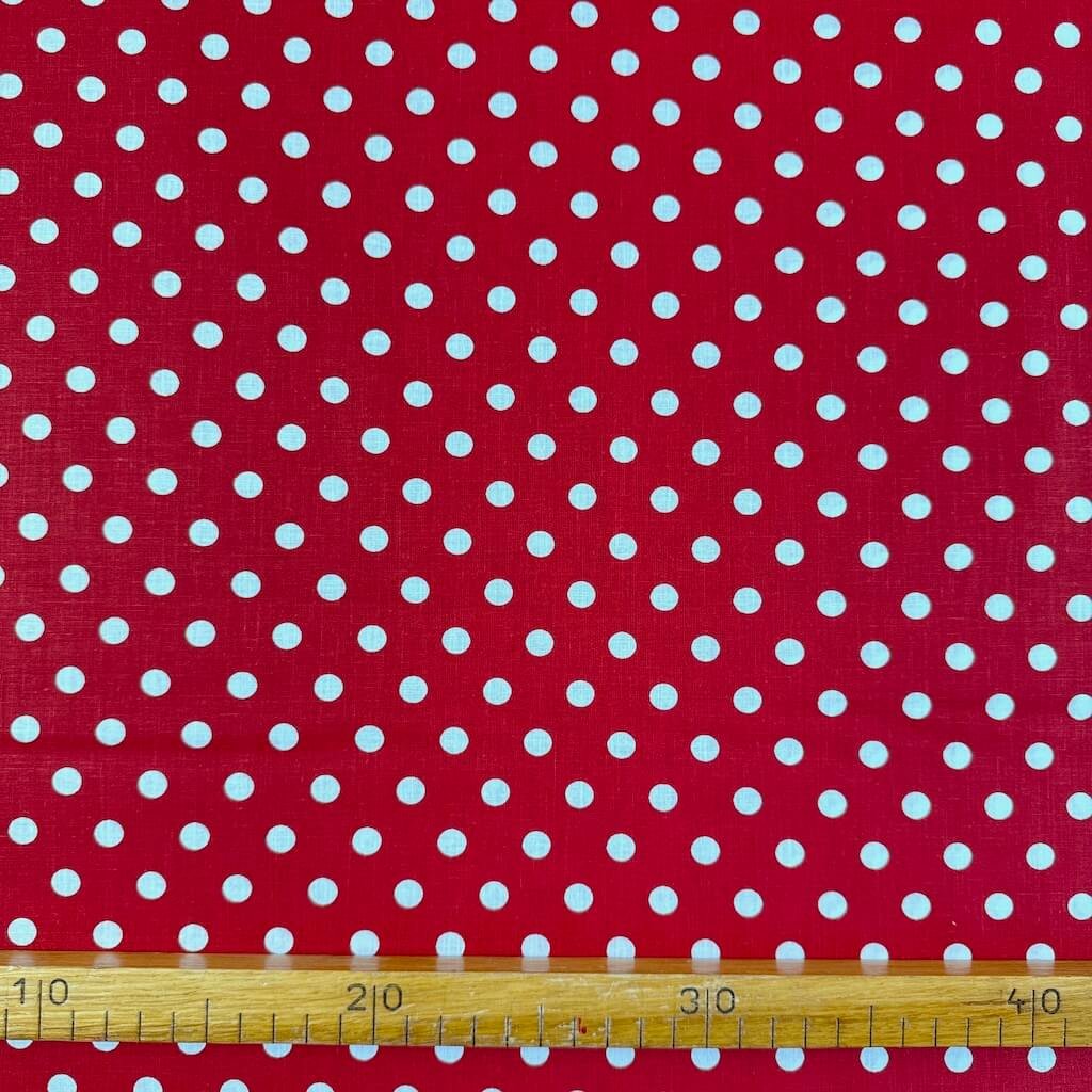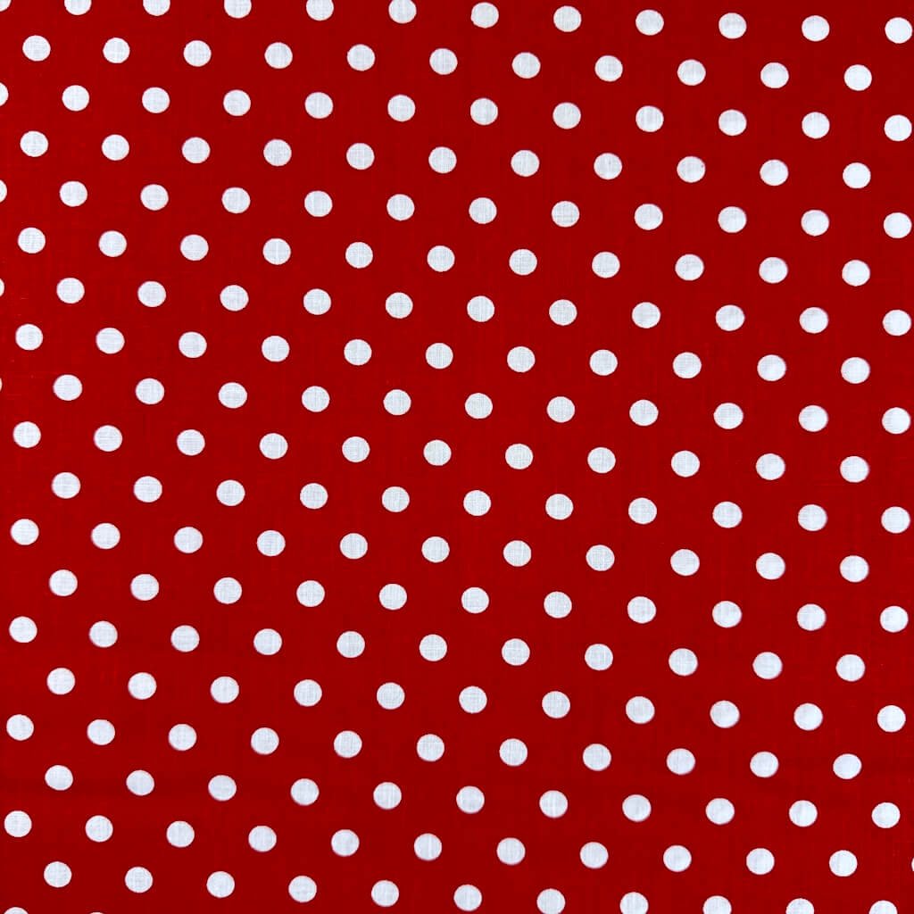 Baumwolle gemustert - Weiße Punkte (1 cm) auf Dunkelrot
