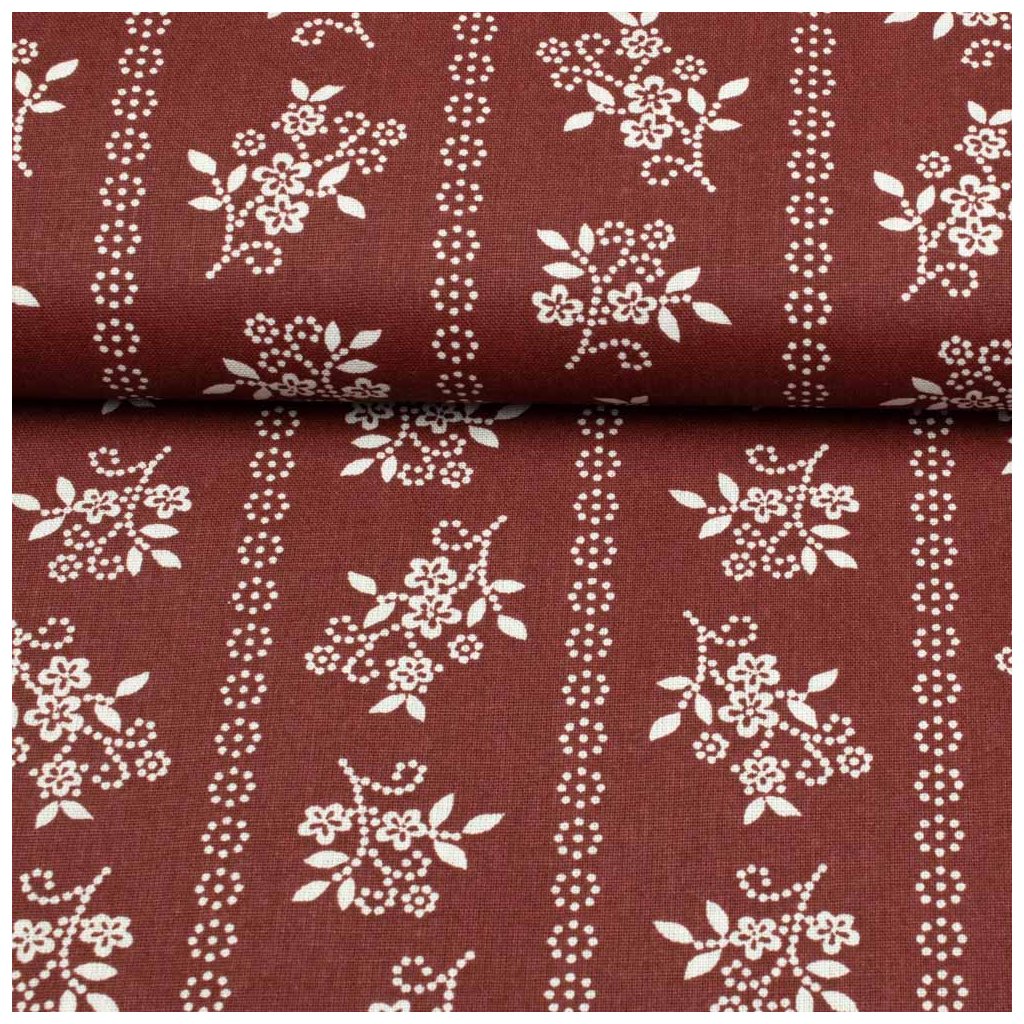 Baumwolle Volksmuster - Blume auf Bordeauxrot