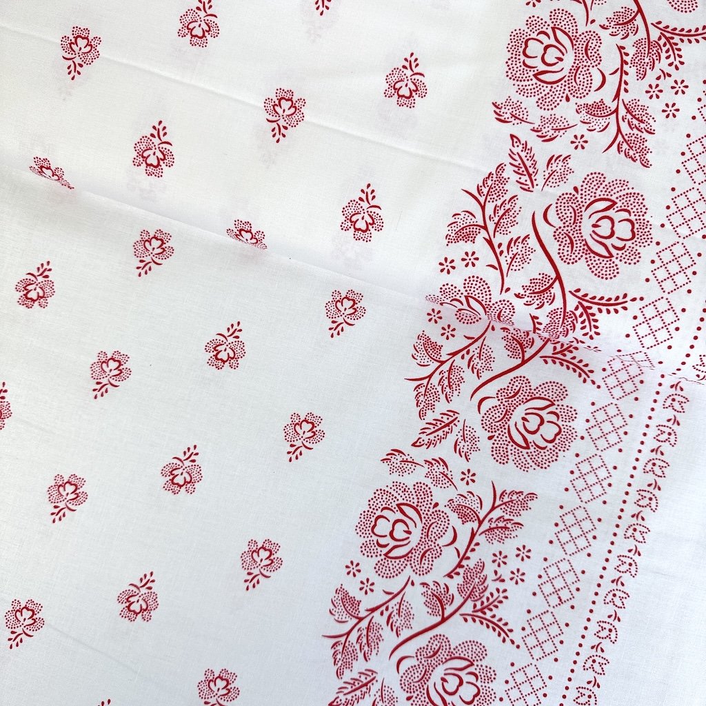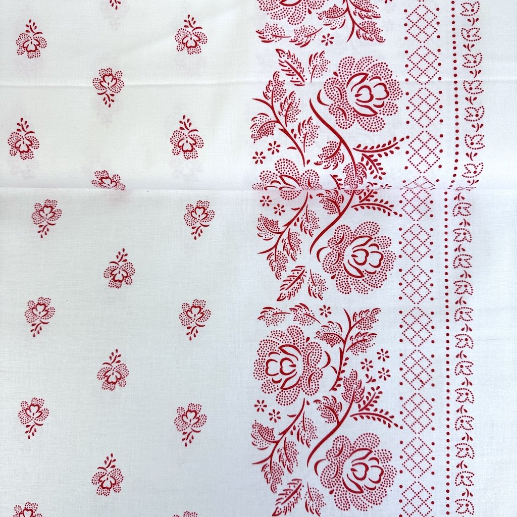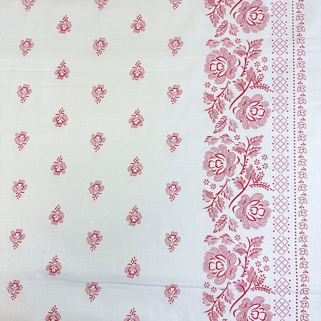 Baumwolle Volksmuster - Bordüre Rose Weiß