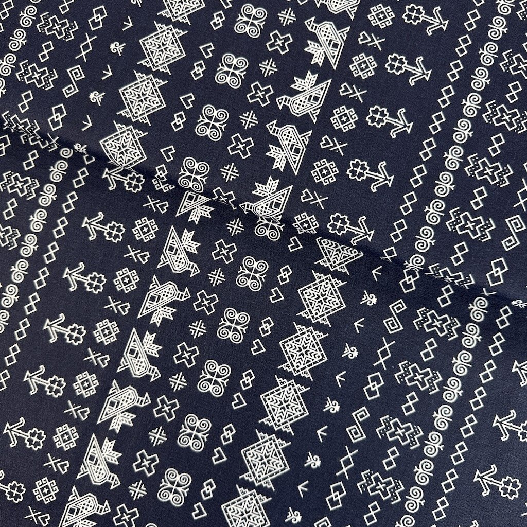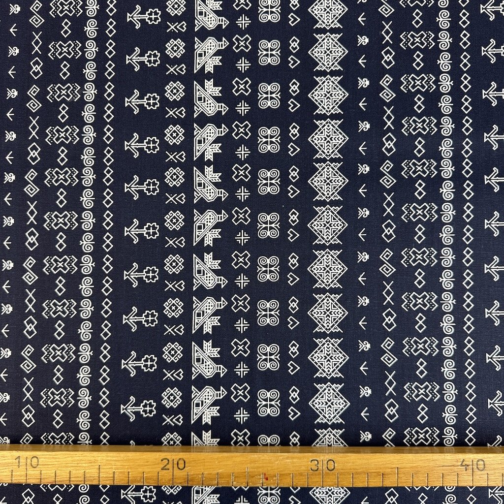 Baumwolle Volksmuster - Čičmany dunkelblau