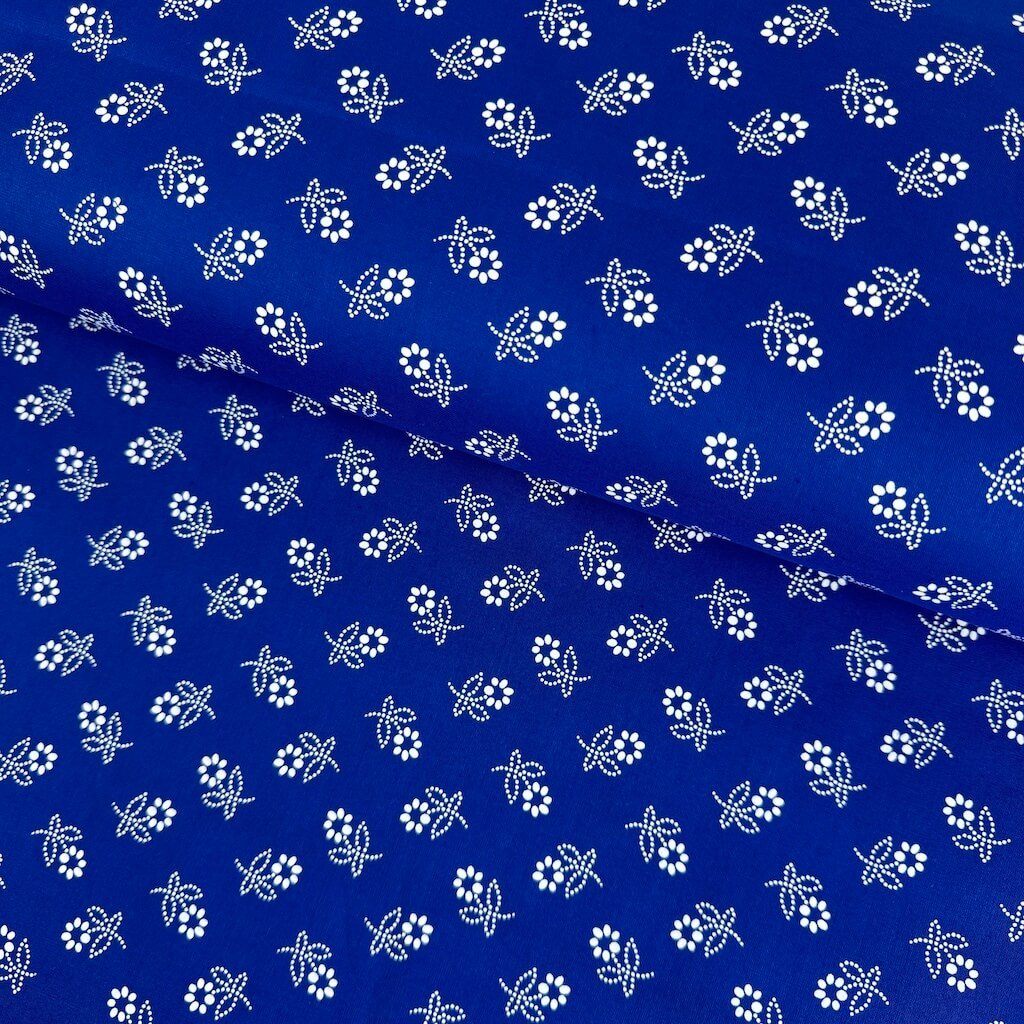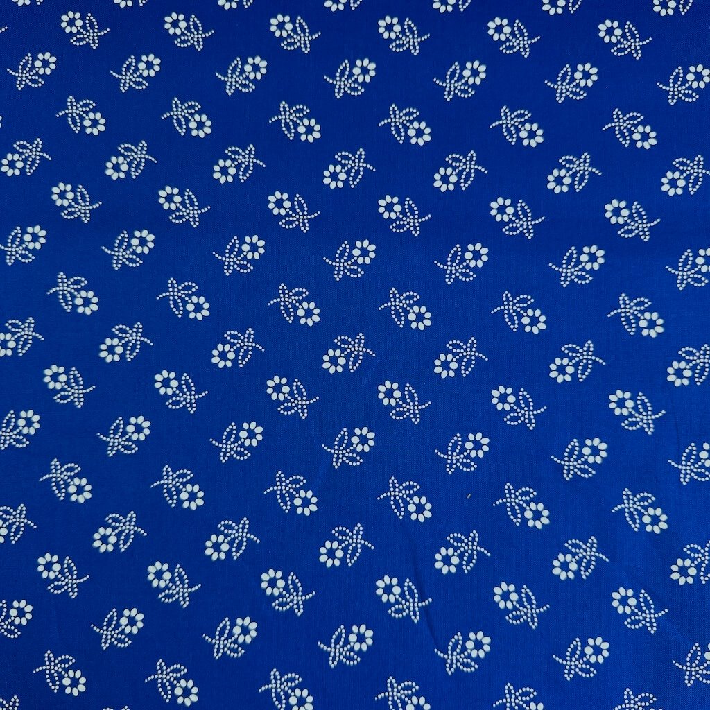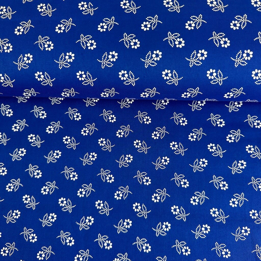 Baumwolle Volksmuster - Weißes Gänseblümchen auf Königsblau