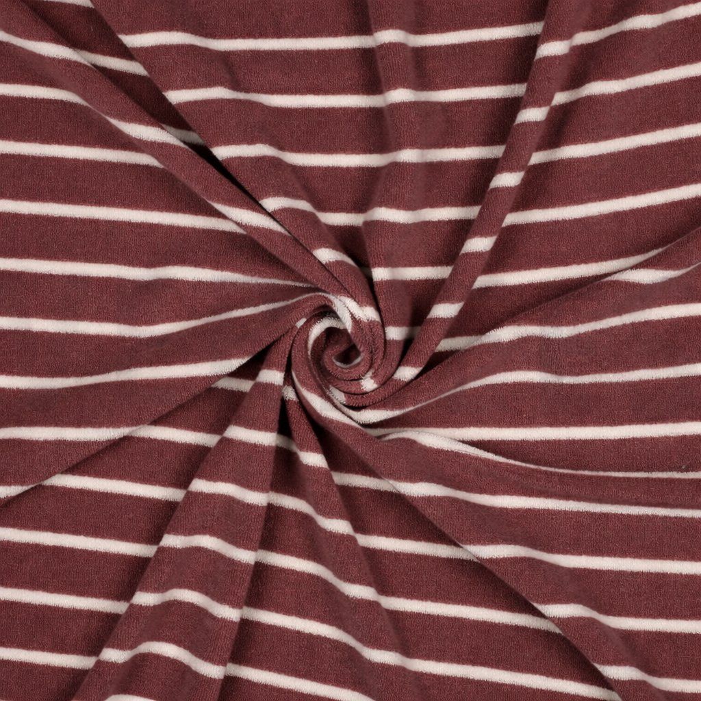 Baumwollfrottee – Mauve mit ecrufarbenen Streifen