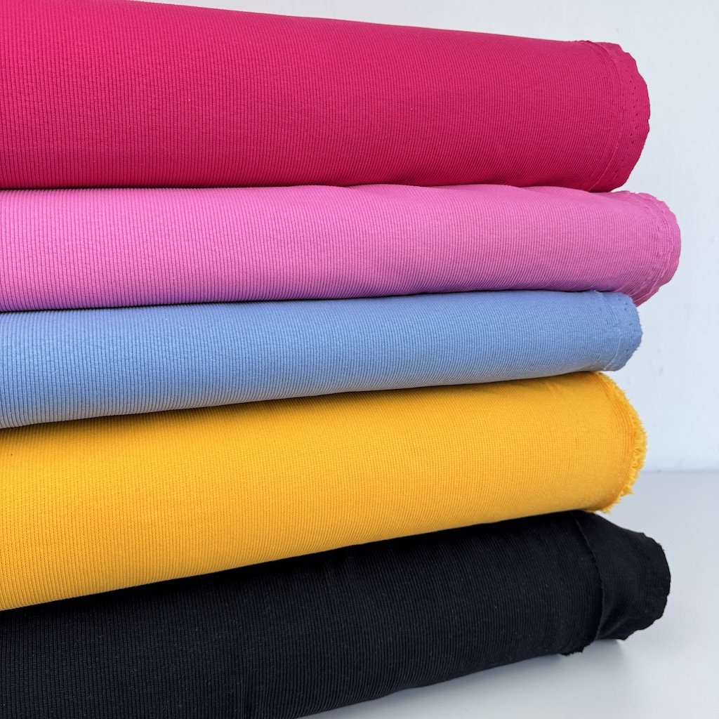 Das schmale Bündchen besteht aus 95 % Baumwolle und 5 % Lycra und eignet sich ideal als Abschlussmaterial für Jogginghosen, Ärmel von Sweatshirts oder Jacken. Es kann auch im Taillenbereich verwendet werden – dort empfiehlt sich die Kombination mit einem Gummiband. Dank des Lycra-Anteils kehrt das Bündchen nach dem Dehnen zuverlässig in seine ursprüngliche Form zurück.