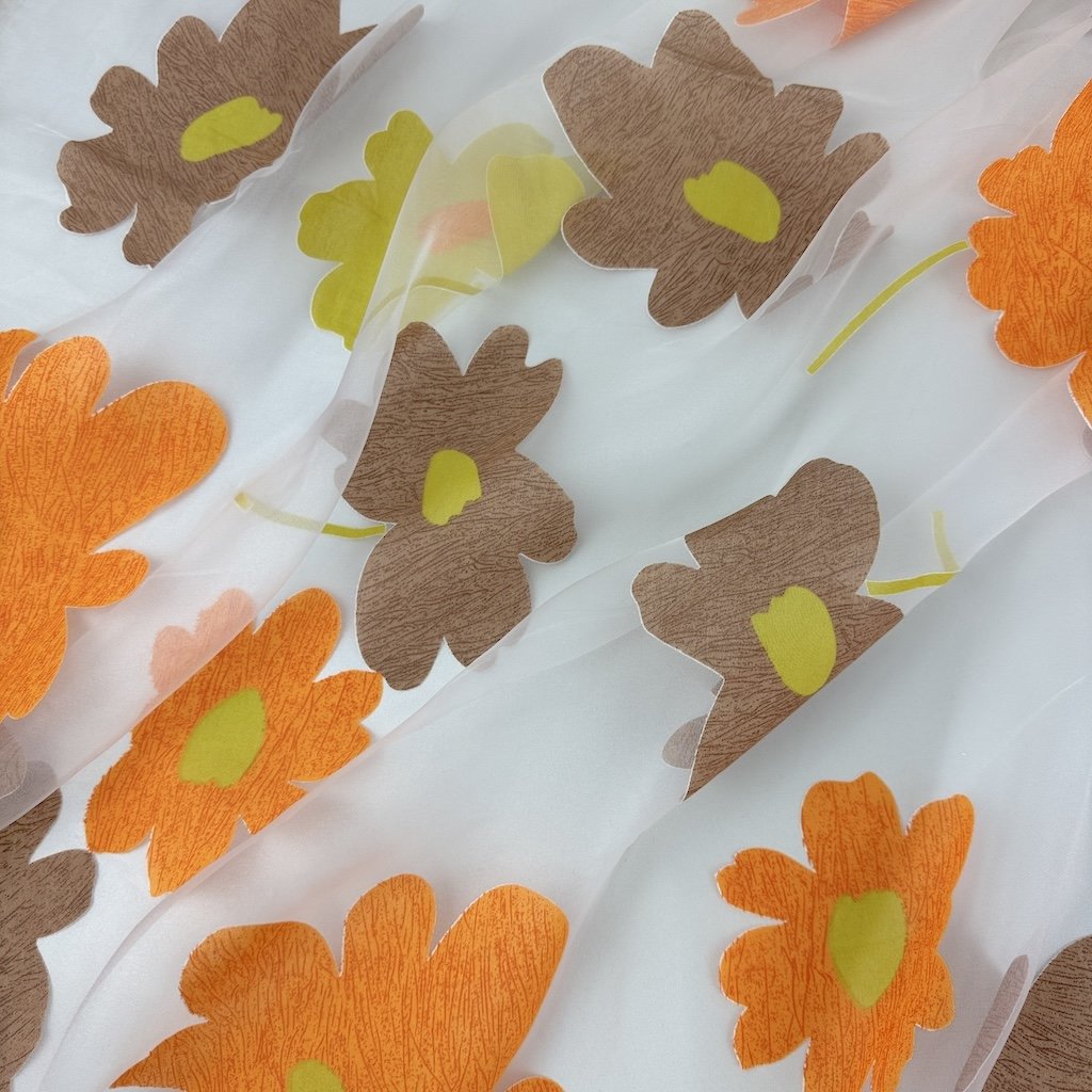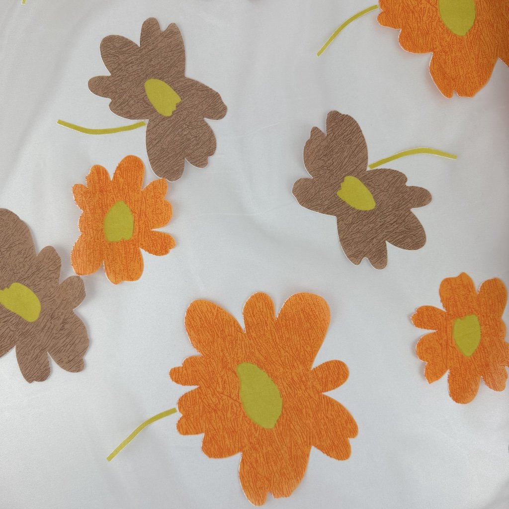 Ein glatter, mattweißer Stoff, der mit seinem farbenfrohen Retro-Stil beeindruckt.