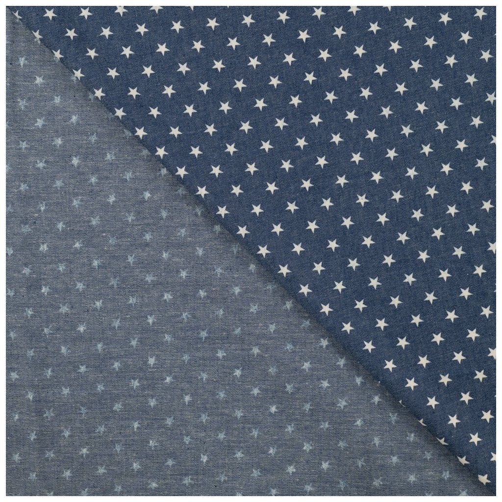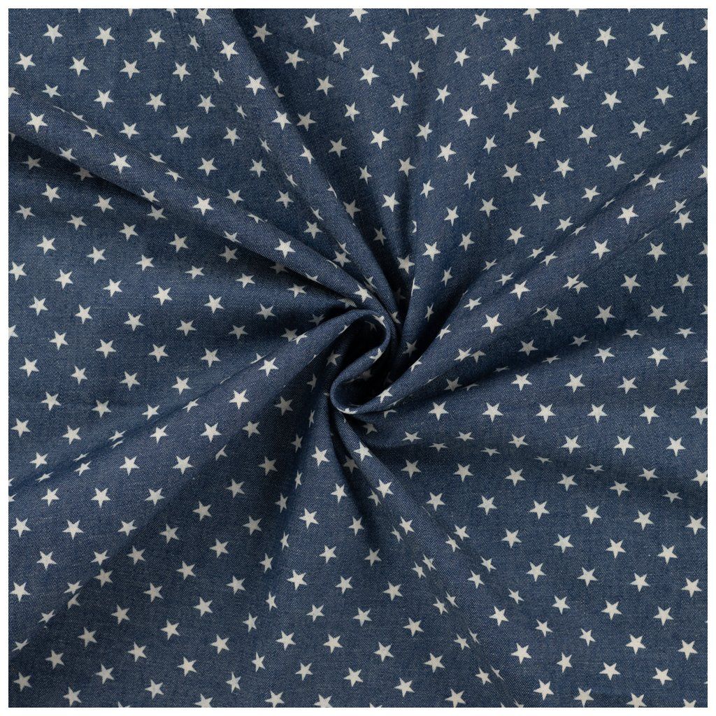 Dieser hochwertige Kleiderstoff aus 100 % Baumwolle ist die ideale Wahl für leichte und bequeme Kleidung. Das Chambray-Gewebe mit einem Gewicht von 140 g/m² ist angenehm weich im Griff und zugleich ausreichend fest und strapazierfähig für den täglichen Gebrauch. Der blaue Hintergrund wird von einem dezenten, aber dennoch auffälligen Muster aus kleinen, gleichmäßig verteilten weißen Sternen geschmückt, das dem Stoff eine verspielte und frische Optik verleiht. Dank seiner Leichtigkeit und Atmungsaktivität eignet er sich ideal für Kleider, Röcke, Hemden, Blusen oder Kinderbekleidung.