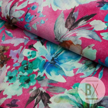 Leinen digital - Blumen rosa-grün