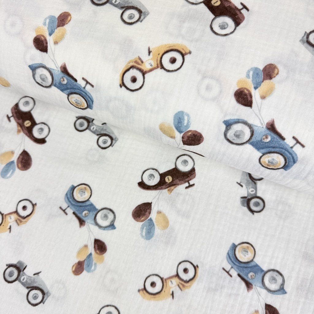 Gemusterter Musselin / Doppelgaze, auch als Mullstoff bekannt, ist ein feiner, luftiger und besonders angenehmer Stoff aus 100 % Baumwolle. Dank seiner typischen gekreppten (gewellten) Struktur ist er von Natur aus leicht elastisch, weich im Griff und bügelfrei. Die doppelte Gaze sorgt für Stabilität, während Leichtigkeit und Atmungsaktivität erhalten bleiben. Elegante Muster verleihen dem Stoff eine originelle Optik, die sich ideal für Kinder- und Damenbekleidung sowie für Wohnaccessoires eignet. Musselin ist besonders beliebt für Sommerkleider, Blusen, Röcke, Hemden, Babybodys, Einschlagtücher, Decken oder Tücher.