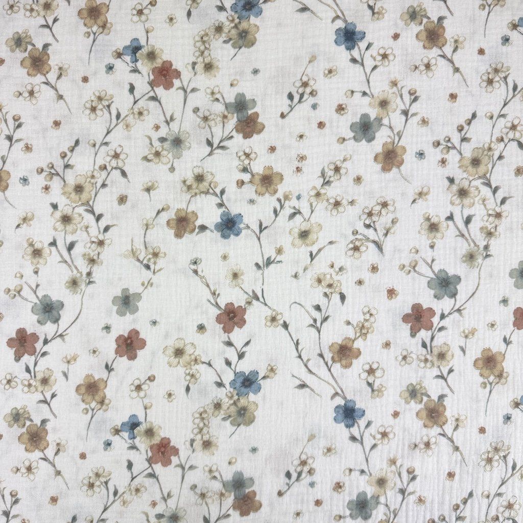 Gemusterter Musselin / Doppelgaze, auch als Mullstoff bekannt, ist ein feiner, luftiger und besonders angenehmer Stoff aus 100 % Baumwolle. Dank seiner typischen gekreppten (gewellten) Struktur ist er von Natur aus leicht elastisch, weich im Griff und bügelfrei. Die doppelte Gaze sorgt für Stabilität, während Leichtigkeit und Atmungsaktivität erhalten bleiben. Elegante Muster verleihen dem Stoff eine originelle Optik, die sich ideal für Kinder- und Damenbekleidung sowie für Wohnaccessoires eignet. Musselin ist besonders beliebt für Sommerkleider, Blusen, Röcke, Hemden, Babybodys, Einschlagtücher, Decken oder Tücher.