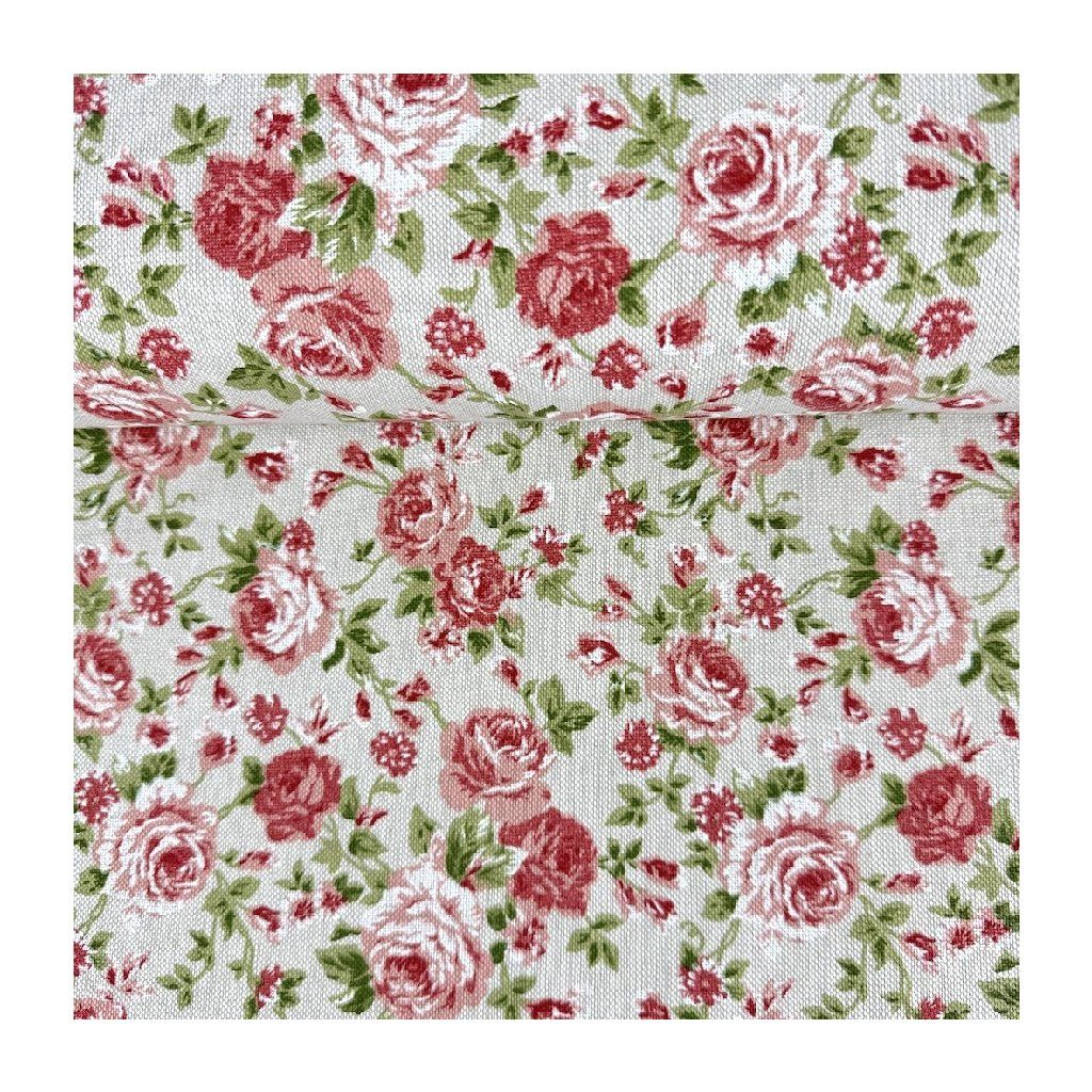 Panama Digital – Röschen auf naturfarbenem Hintergrund