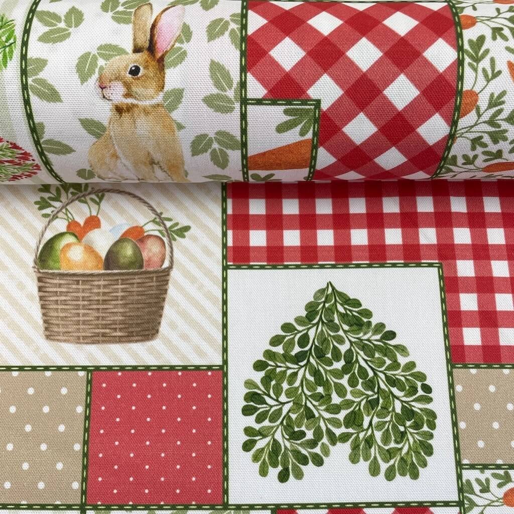 Spanische Loneta Digital Premium - Ostern - Patchwork auf Rot