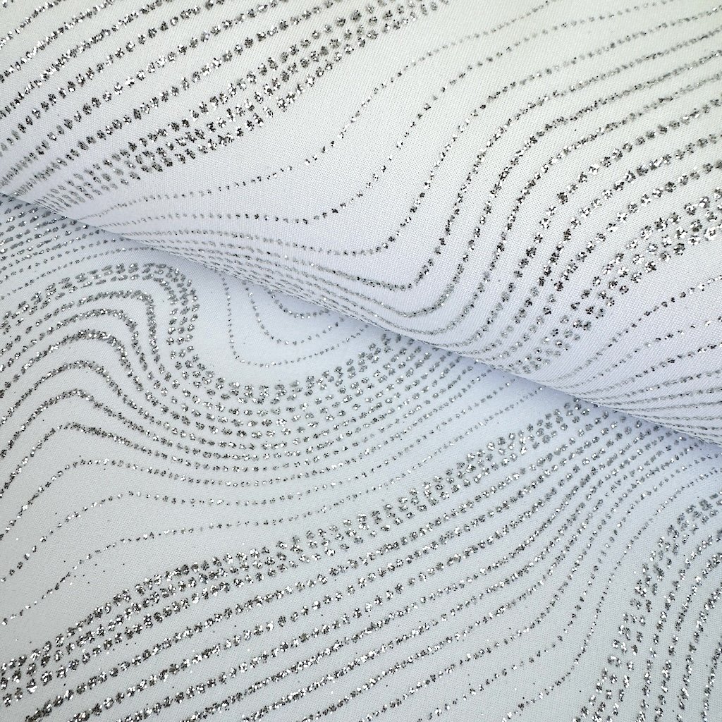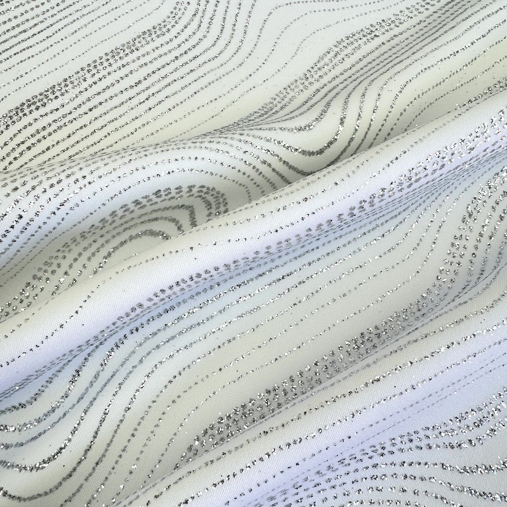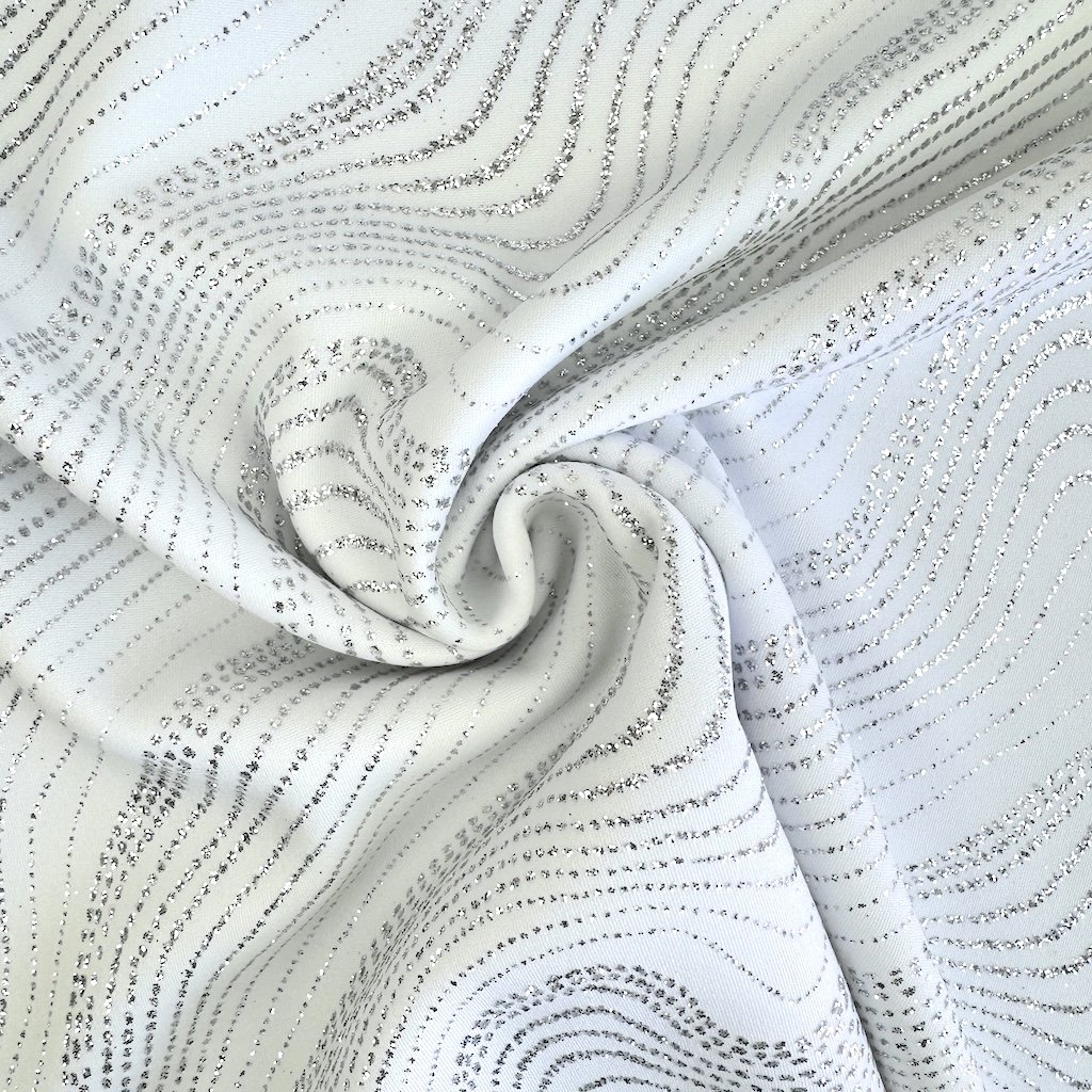 Einzigartiger Jerseystoff, entworfen, um das Rampenlicht auf der Tanzfläche auf sich zu ziehen. Die leichte und atmungsaktive Struktur sorgt für Komfort und Bewegungsfreiheit – unerlässlich für unbeschwertes Tanzen ohne Kompromisse. Die glitzernde Oberfläche verleiht dem Stoff einen Hauch von Magie und erzeugt einen funkelnden Effekt, der jeden Tanzschritt betont. Ideal für die Herstellung von Tanz- und Gymnastikanzügen sowie eleganten Abendkleidern.