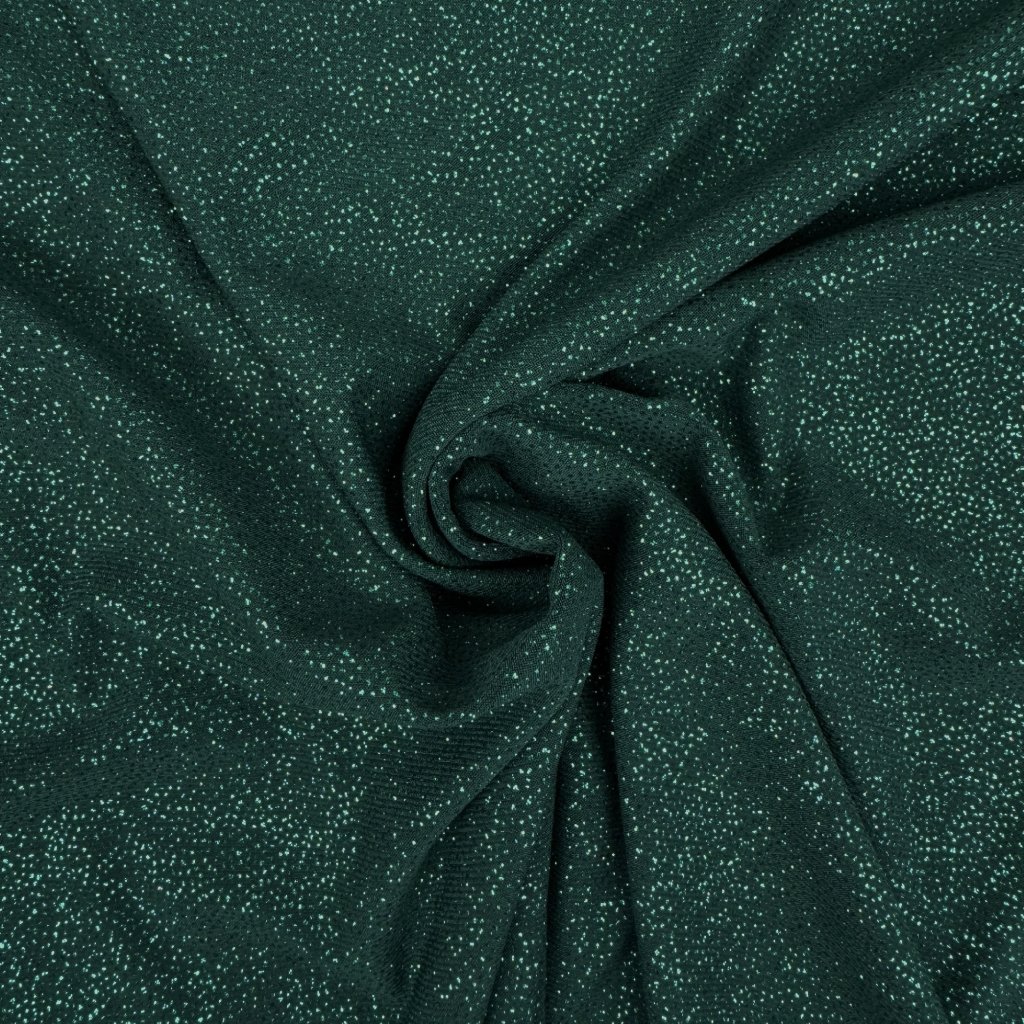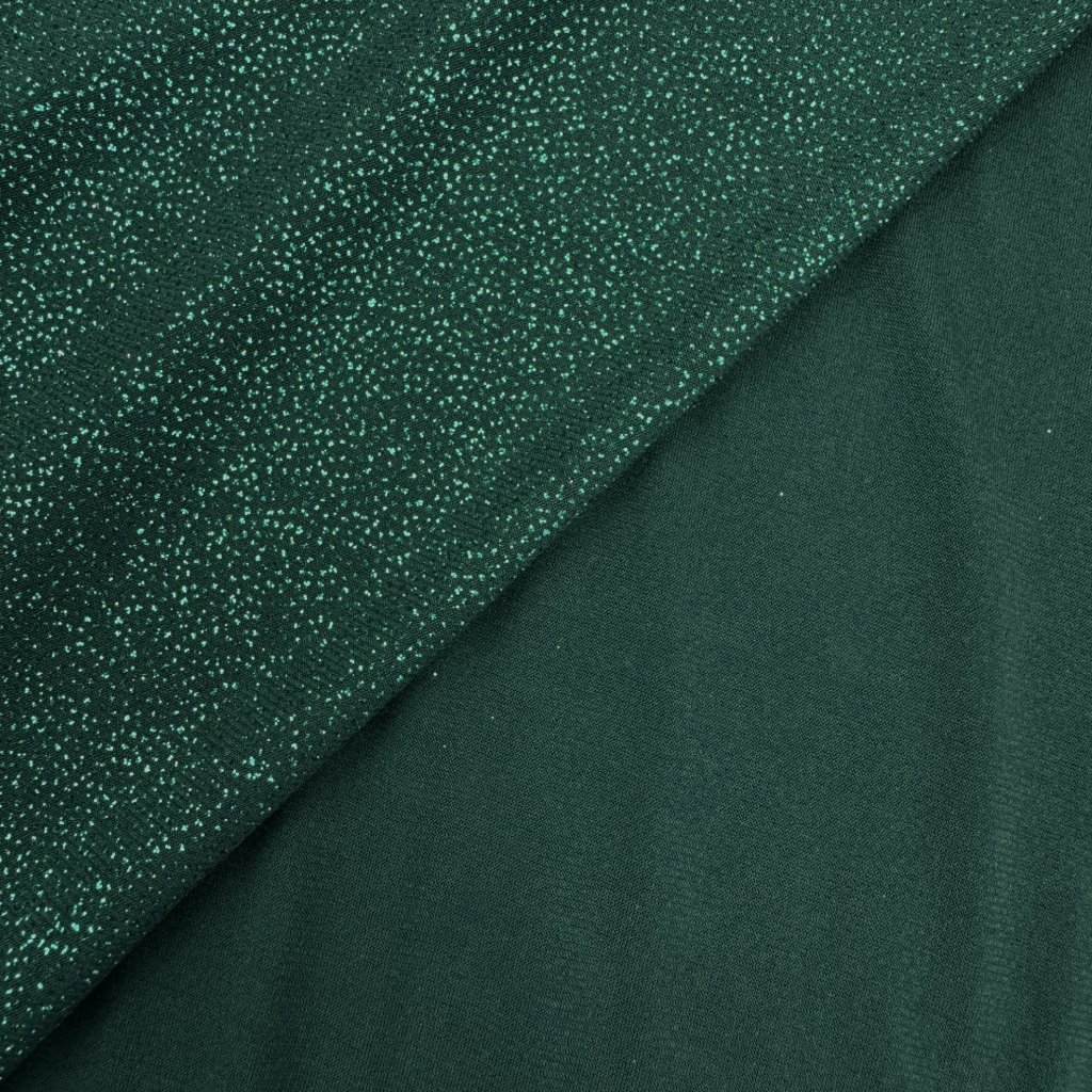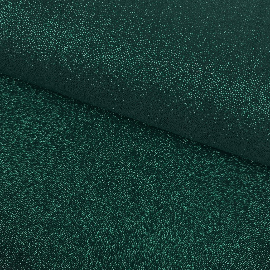 Einfarbiger Jersey mit Glitzer ist ein hochwertiger Stoff mit einem Gewicht von 250 g/m² und einer Zusammensetzung von 95 % Polyester und 5 % Spandex. Er ist angenehm zu tragen und eignet sich zum Nähen von Festkleidern, Sommerkleidern, Tuniken, Tops, Röcken und Hosen.