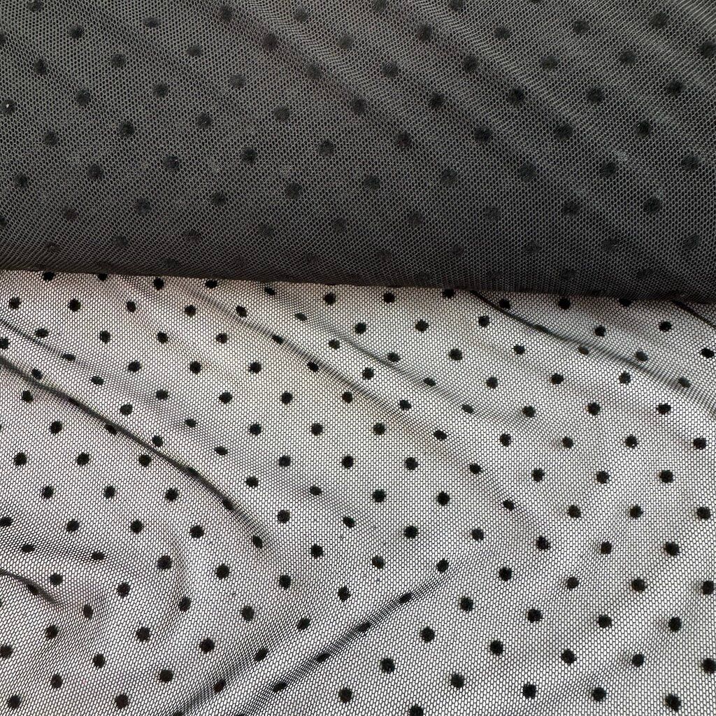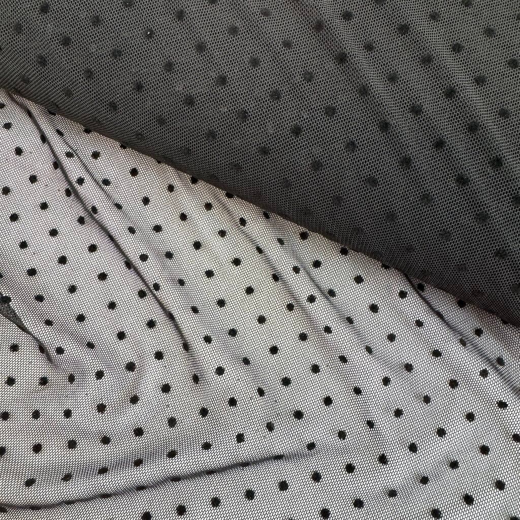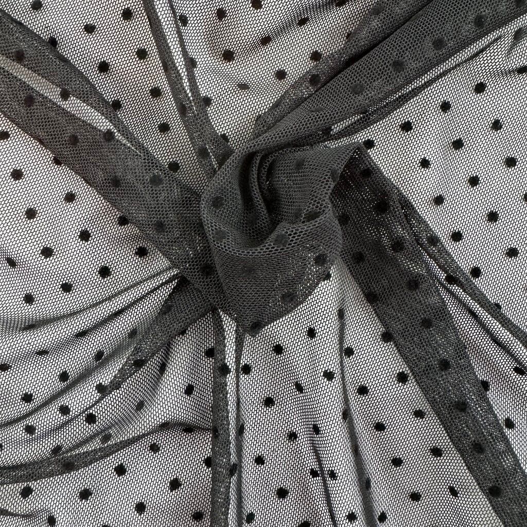Tüll elastisch "4-way" gepunktet - Schwarz