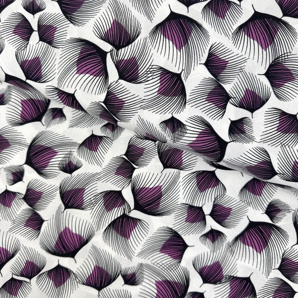 Viskose ist derzeit ein sehr beliebter Naturstoff, der aus Zellulosefasern hergestellt wird. Der Stoff mit einem Gewicht von 115 g/m² ist leicht, luftig, weich fallend und angenehm im Griff – ideal für Sommerkleidung, insbesondere für Hemden, Kleider, Röcke, Hosen, Shorts und Tops.